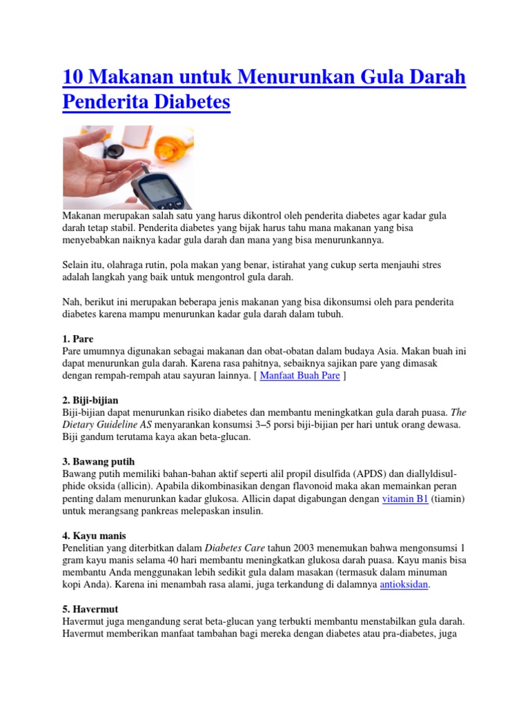 Buah yang dimakan harus memiliki indeks glikemik yang rendah, yaitu sekitar 55. Jika kita sedang sakit dan periksa ke dokter, biasanya dokter akan melakukan pengecekan tingkat tensi darah, karena bisa saja. Tidak semua buah baik dikonsumsi oleh penderita diabetes karena malah dapat menimbulkan lonjakan kadar gula darah dalam tubuh. Sayuran untuk menurunkan gula darah Untuk menurunkan kadar gula darah, anda bisa mengonsumsi satu sendok makan cuka apel yang sudah dicampur dengan segelas air.